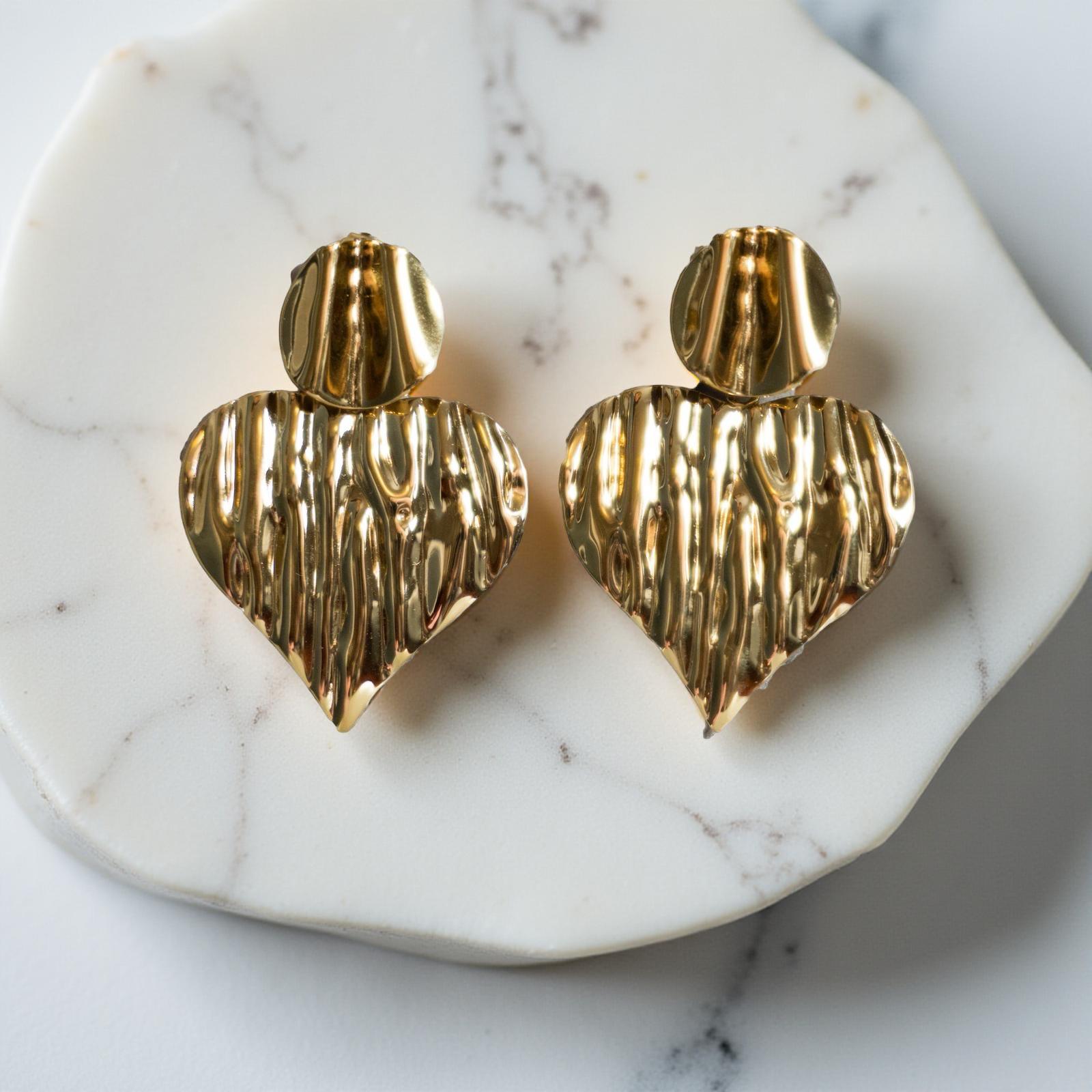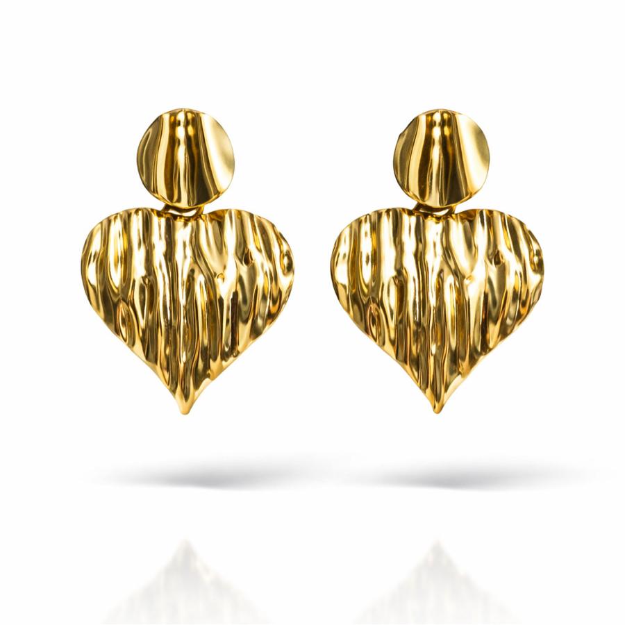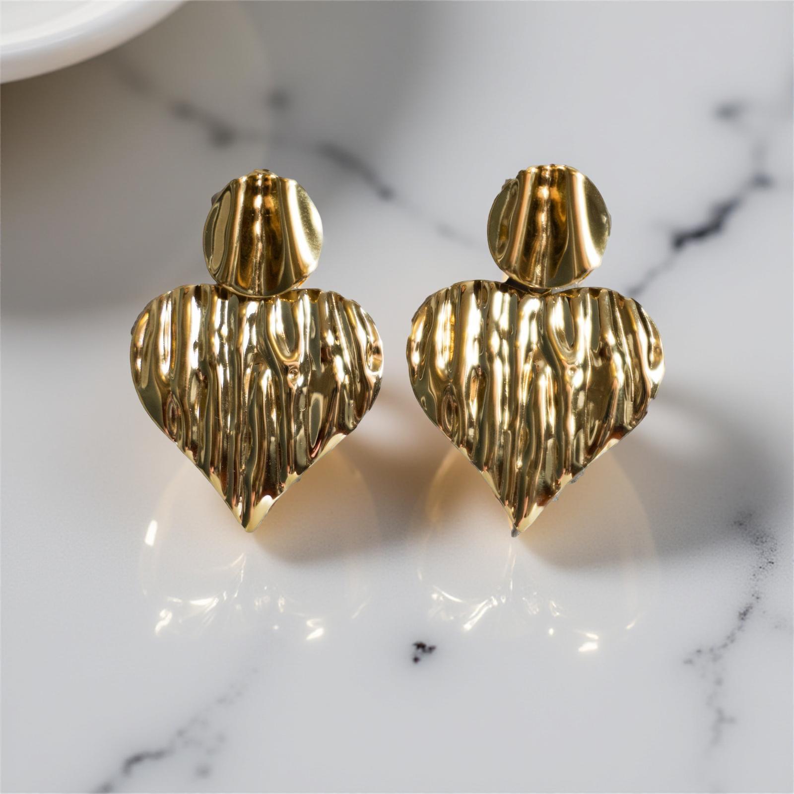 316L Çelik Gold Renk Ezme Kalp Küpe