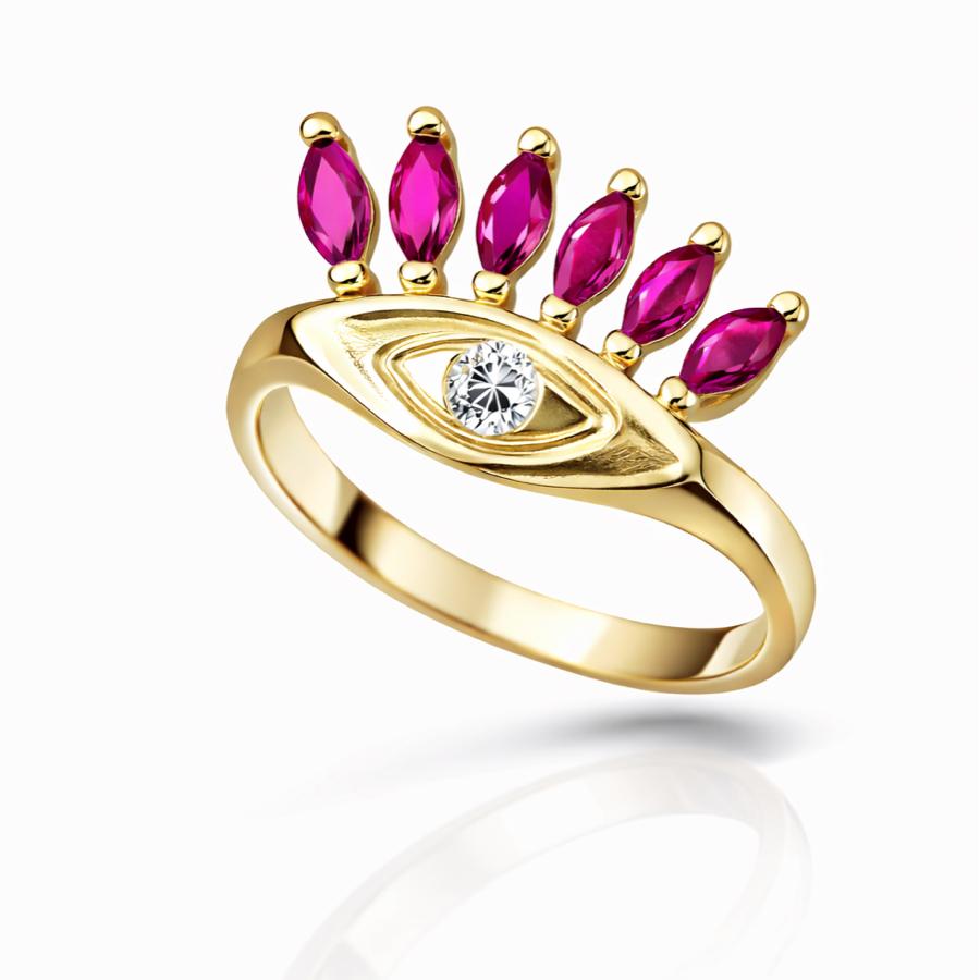 Ayarlananabilir Fuşya Taşlı Kirpik Yüzük