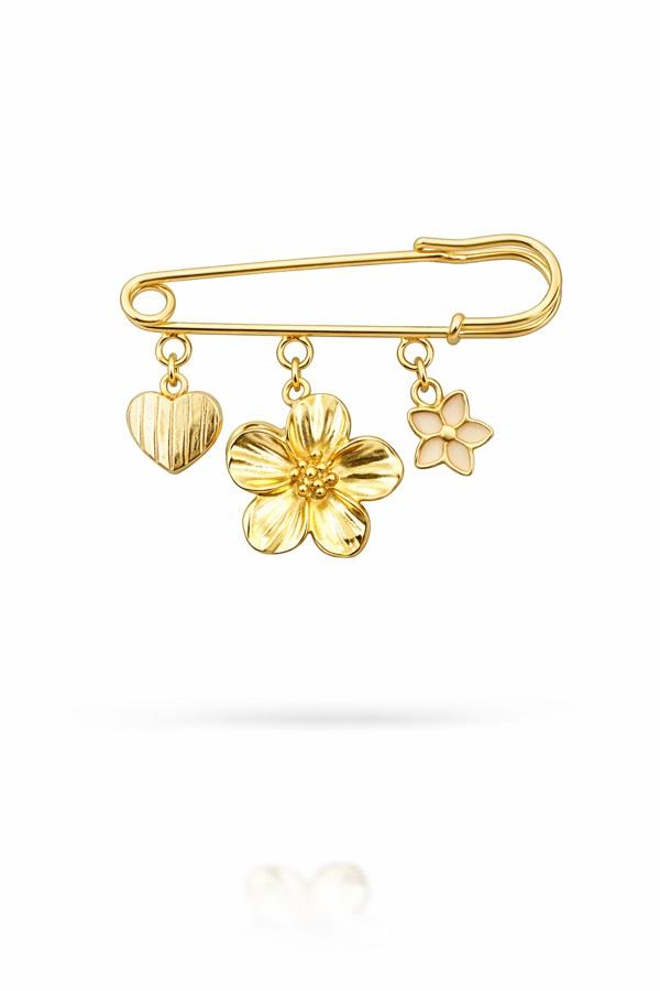 Çiçek ve Kalp Figürlü Sallantılı Çengelli Broş