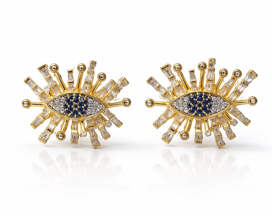 Küpe, kaliteli malzemeler kullanılarak üretilmiştir. Üzerinde yer alan çift renk zirkon taşları, zarif bir görsellik sunarken, her rengin kendine has ışıltısı ile gözleri üzerine çekmektedir. Tasarımında yer alan göz figürü, kültürel ve mistik anlamlar taşır ve bu sayede kişisel tarzınıza anlam katacak bir simge olarak öne çıkar.