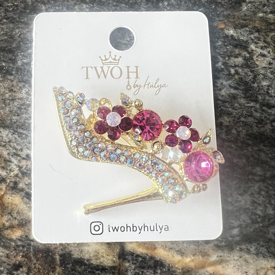 Bu broş, zarif ayakkabı formu ile tasarlanmıştır ve taş detayları ile süslenmiştir. Her hareketle birlikte ışıldayan taşları, broşu takan kişinin stilini yüceltirken, aynı zamanda herhangi bir kıyafeti de zenginleştirir. Özellikle elbiselerde, ceketlerde veya şallarda harika bir görünüm yaratır.