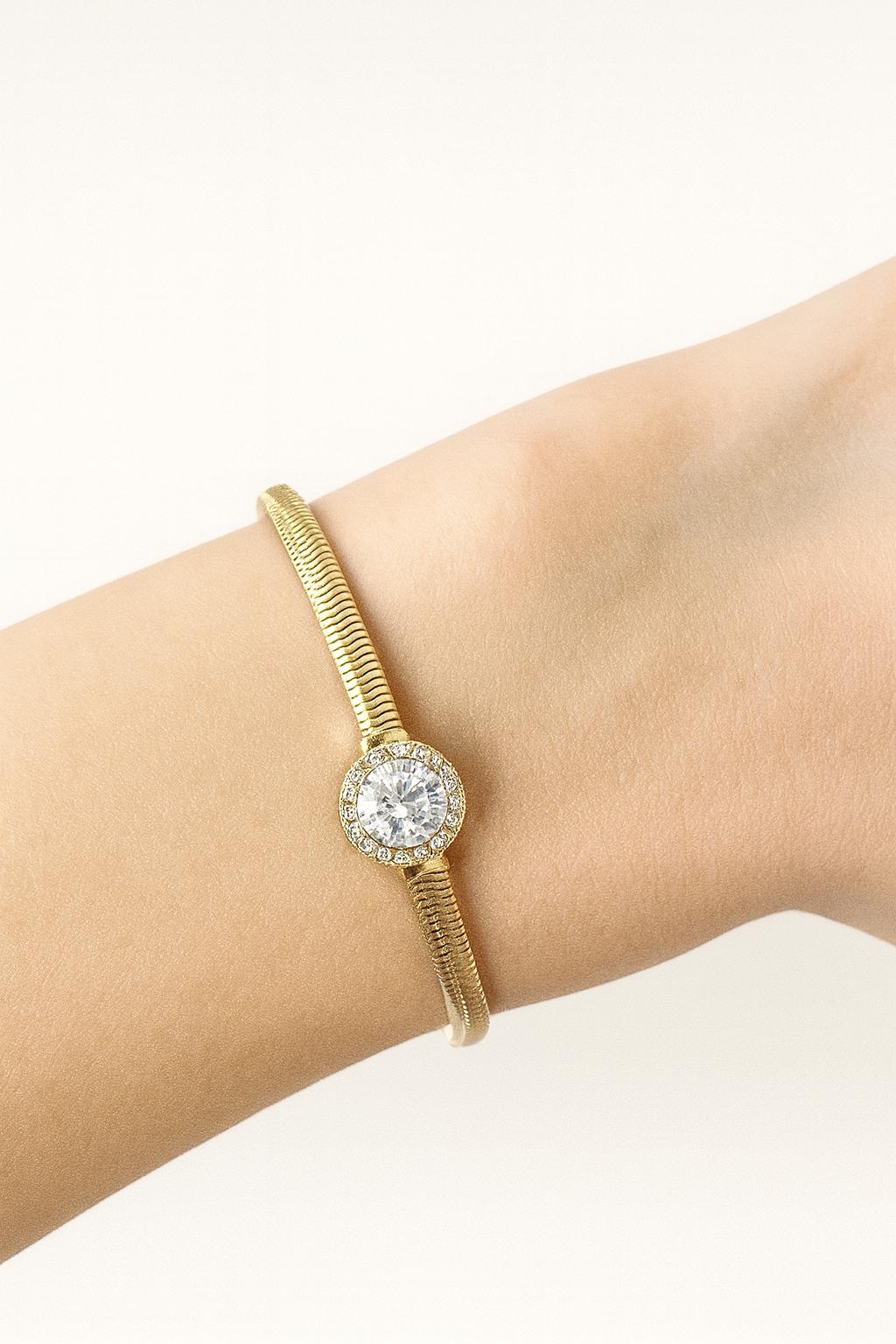 Gold Çelik Bileklik Baget Taşlı Bileklik