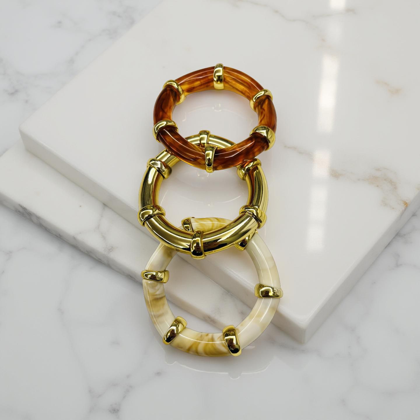 Bileklik, dikkat çekici altın detaylarıyla göz alıcı bir görünüm sunarken, minimalist tasarımı sayesinde her tür kıyafetle uyum sağlar. Modern ve estetik hatlarıyla, bileğinizi saran zarafet dolu bir aksesuar olarak öne çıkar. Farklı stillere uyum sağlama becerisi ile bu bileklik, günlük hayatta ya da özel anlarınızda sizinle birlikte olacak.