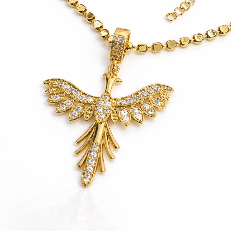 Kolye, klasik ankakuşu tasarımıyla göz alıcı bir görüntü sunmaktadır. Narin bir şekilde işlenmiş detayları, zarafeti ve özgünlüğü simgeliyor. Bu özel tasarım, her yaş grubundaki kadınlar için ideal bir tercih olma özelliğine sahiptir. Kolye uç kısmında bulunan ankakuşu motifi, stilinizi tamamlayacak şık bir dokunuş sağlar.