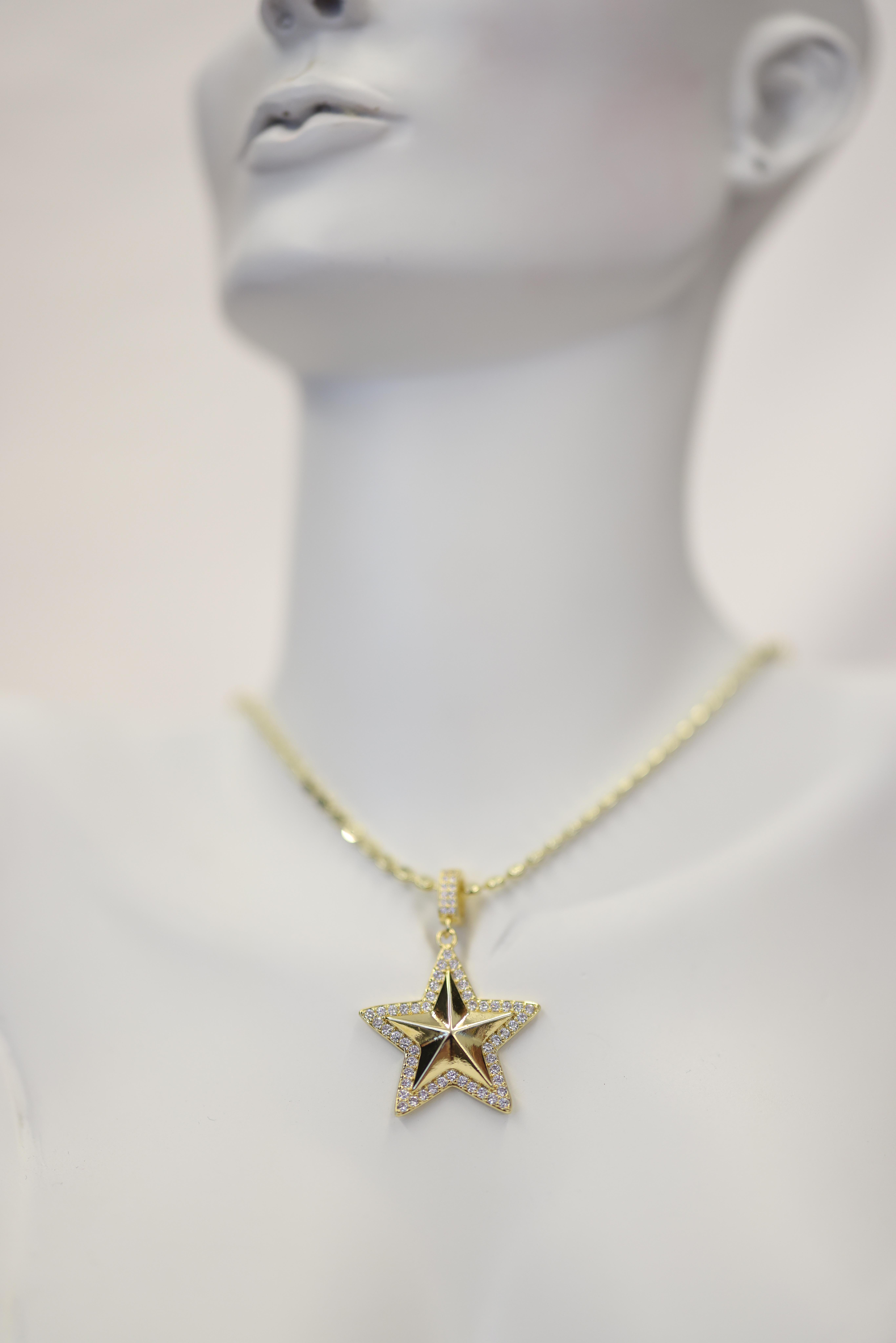 Kolyenin ön kısmında yer alan kabartmalı yıldız figürü, tasarımına farklı bir derinlik ve anlam katar. Yıldız figürü, özellikle kişisel başarıları, hayalleri ve hedefleri simgeleyen bir motif olarak değerlendirildiğinden, bu kolye sadece bir aksesuar değil, aynı zamanda ilham verici bir parça olma özelliği taşır.