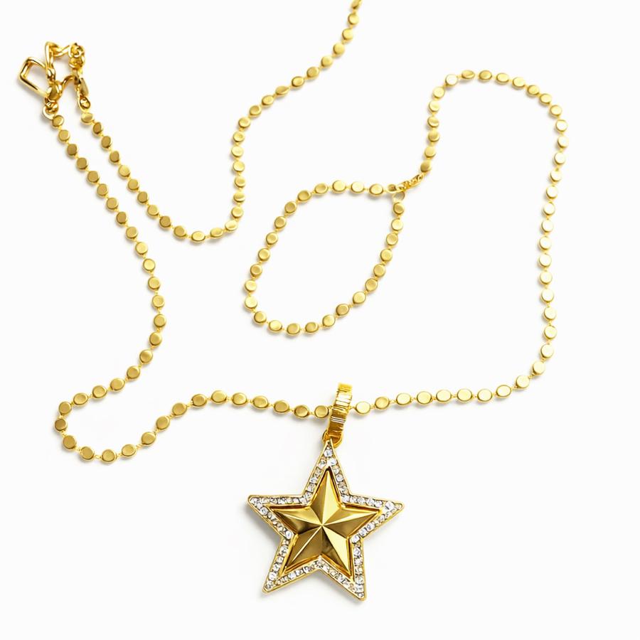 Çelik Gold Ezme Zincir Kabartmalı Yıldız Kolye, modanın vazgeçilmez bir parçası olmasının yanında, özgünlüğü, zarafeti ve dayanıklılığı ile de dikkat çekmektedir. Kendinize veya sevdiklerinize hediye etmek için harika bir seçenek olan bu kolye, her anınıza değer katmak için tasarlandı.