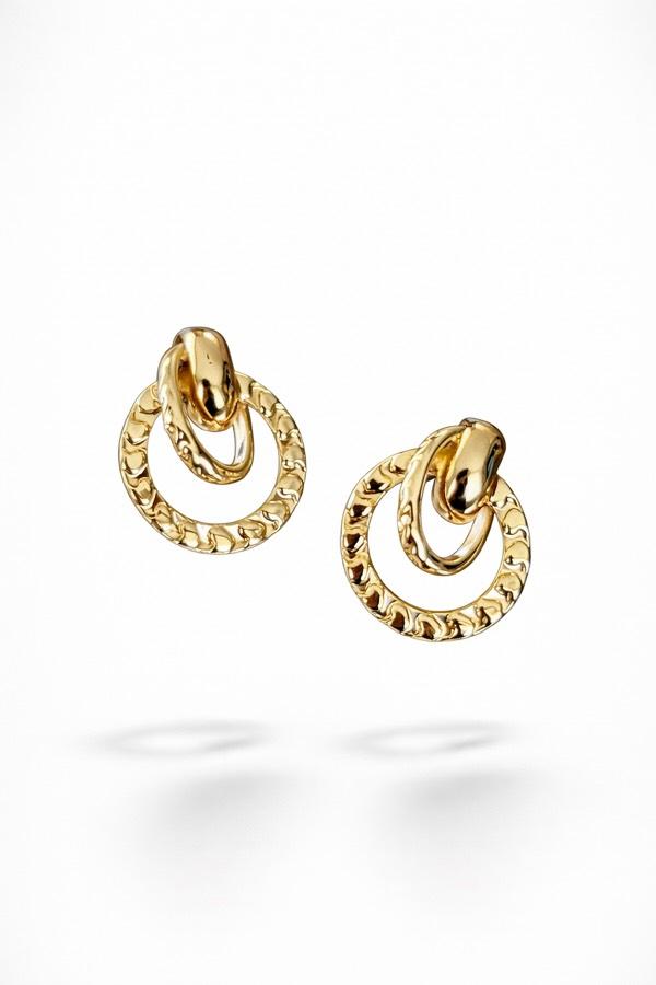 Modern ve zarif tasarımıyla öne çıkan halka detaylı küpe, günlük kombinlerden özel davetlere kadar her stile uyum sağlar. Parlak altın görünümü ve özgün dokulu halka formu sayesinde şıklığınızı tamamlayan dikkat çekici bir aksesuardır. Hafif yapısı sayesinde gün boyu konforlu kullanım sunar.