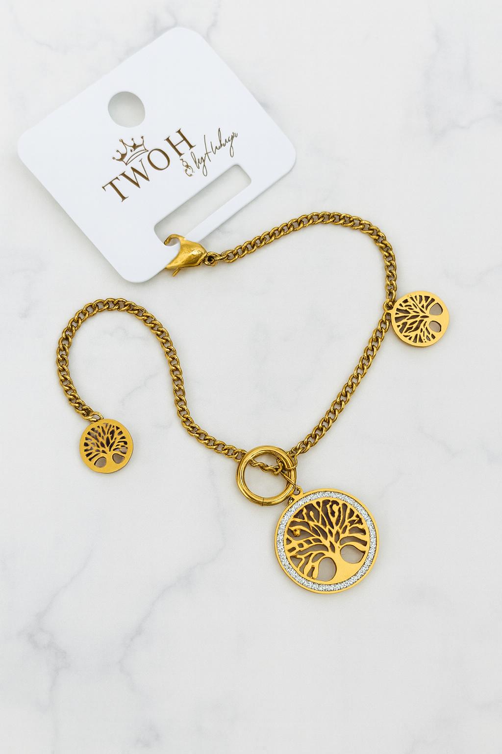 Altın renginde zarif bir tasarım ile karşınıza çıkan Gold Hayat Ağacı Çelik Bileklik, hem şıklığı hem de anlamı ile dikkatleri üzerine çekiyor. Modern ve şık bir görünüm sunan bu bileklik, günlük kullanımdan özel günlere kadar her türlü kombine uyum sağlayacak şekilde tasarlanmıştır.