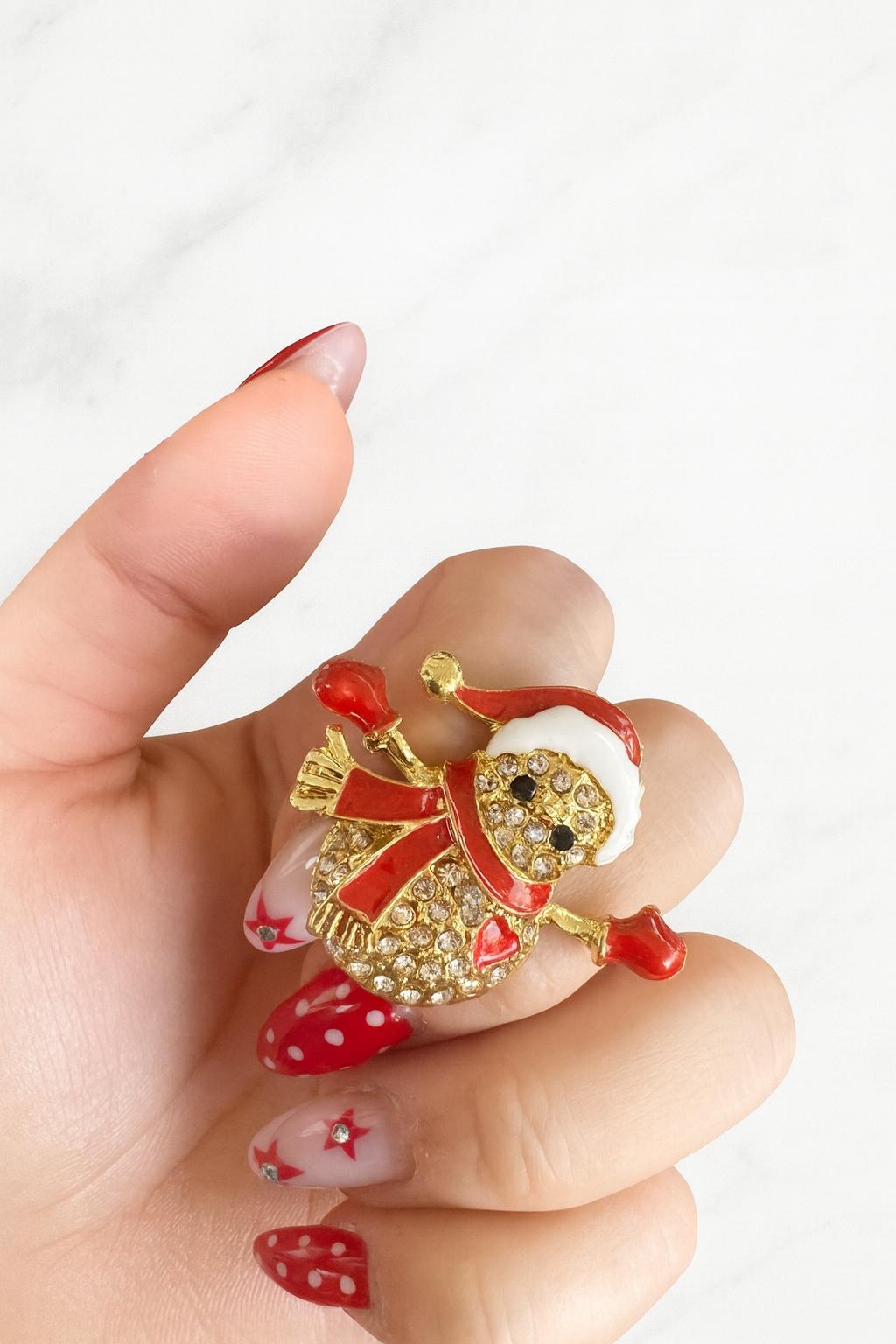 Gold Kardan Adam Taşlı Noel Broş