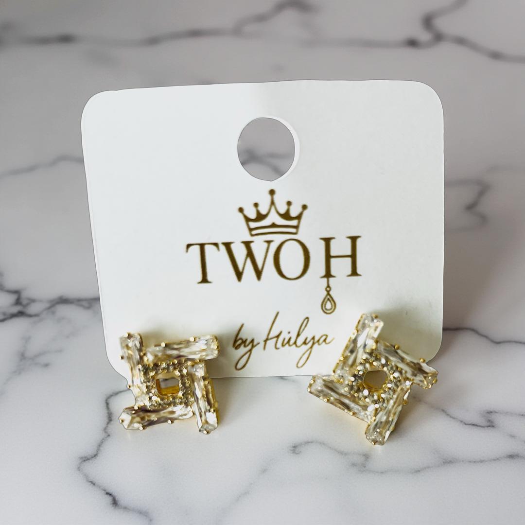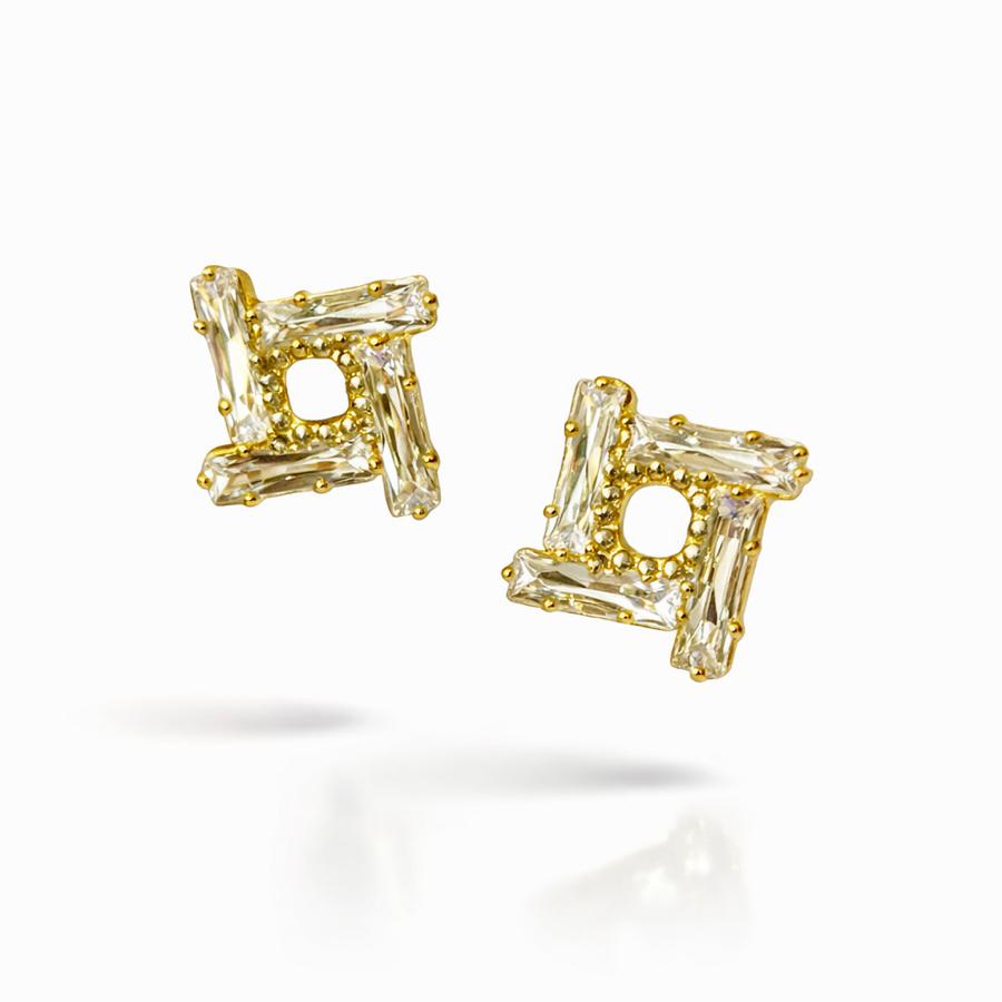 Xuping Gold Küçük Baget Taşlı Kare Küpe – Zarif ve Şık Detay