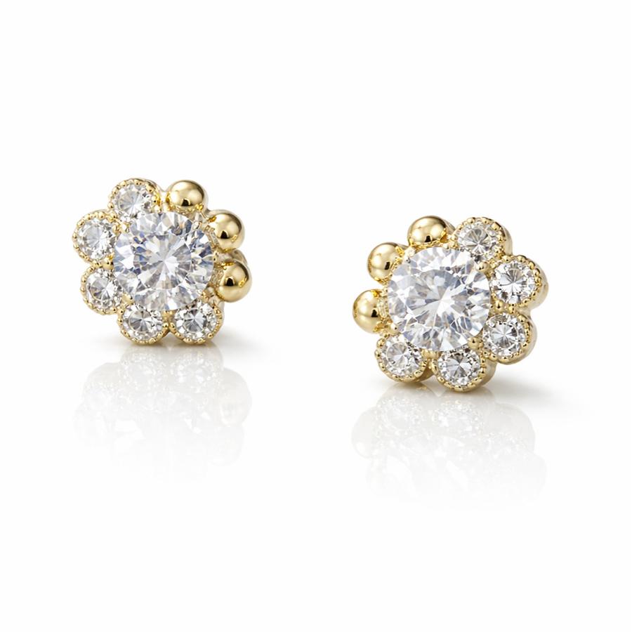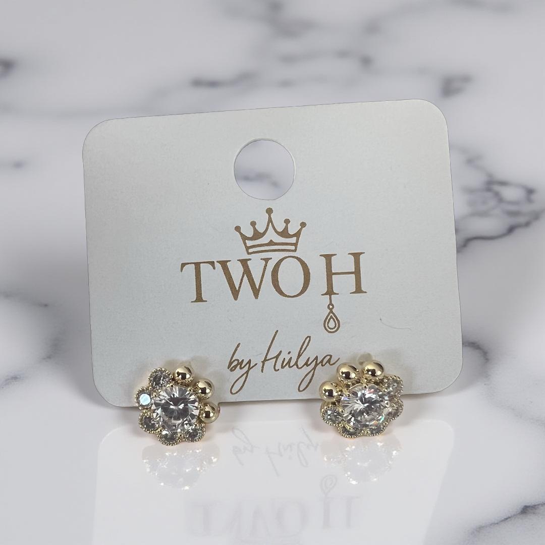 Gold Renk Taşlı Çiçek Küpe