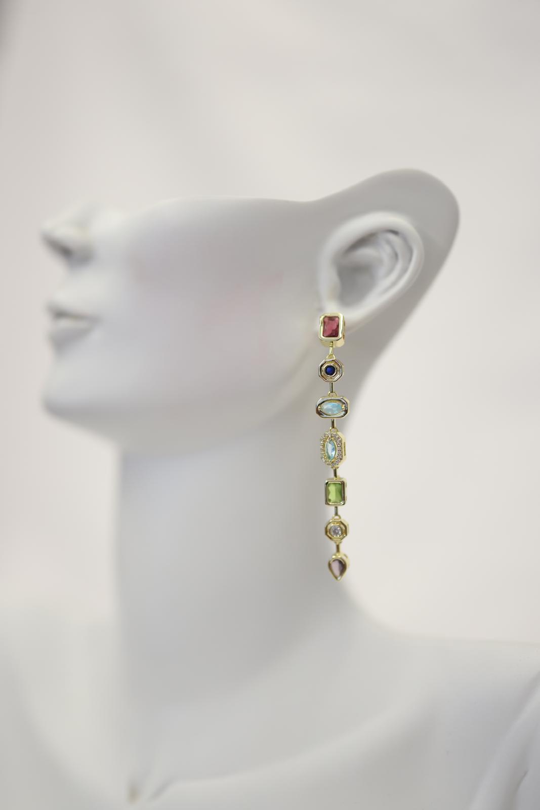 Çelik Gold Renkli Taş Sallamalı Küpe