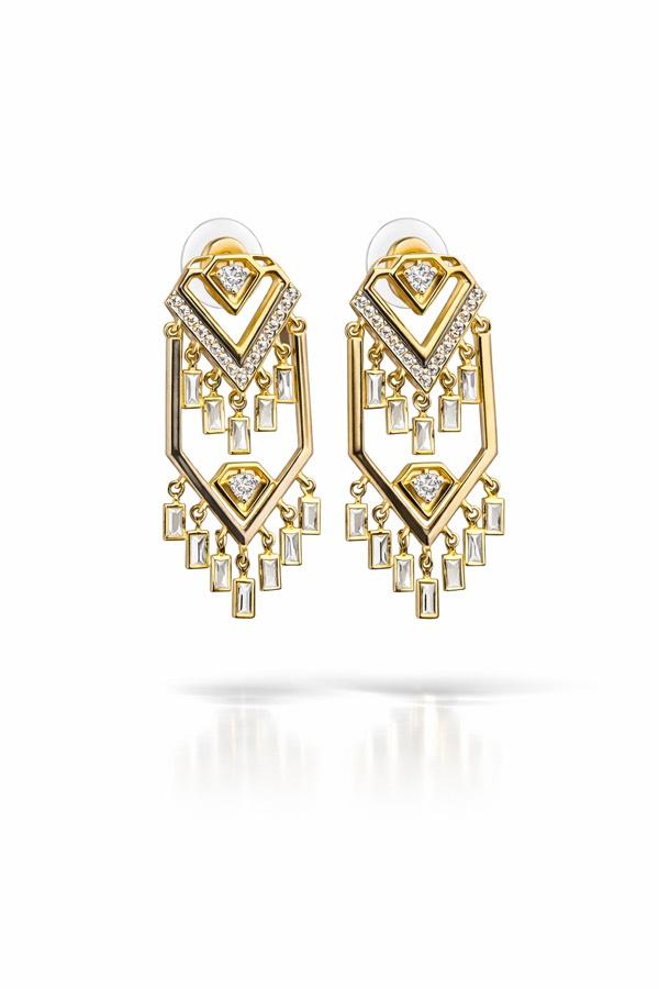 Modern çizgiler ve göz alıcı taş detaylarının buluştuğu bu özel tasarım küpe, stilinize güçlü ve zarif bir dokunuş katıyor. Geometrik formu ve hareketli detayları sayesinde ışığı her açıdan yansıtarak dikkat çekici bir ışıltı sunar.