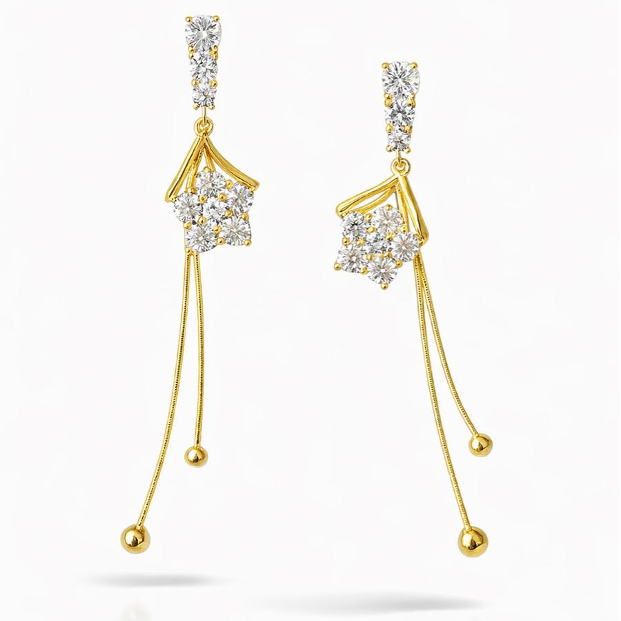 Gold Sallantılı Taşlı Küpe