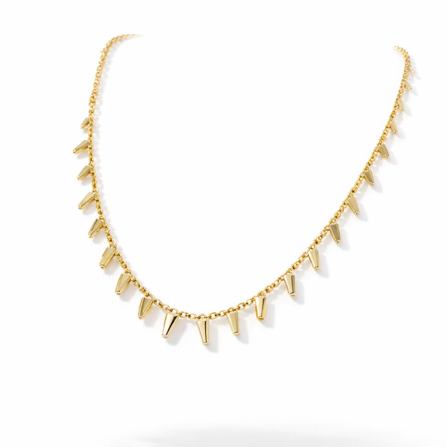 Bu kolye, 14K çelik golden üretilmiştir, bu da ona hem dayanıklılık hem de ışıltı katmaktadır. Paslanmaz yapısı sayesinde uzun yıllar boyunca kullanabileceğiniz bu kolye, özellikle alerjisi olanlar için de ideal bir tercihtir.