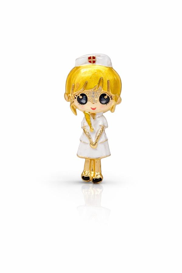 Sevimli hemşire figürüyle tasarlanan bu özel broş, sağlık çalışanları için anlamlı ve göz alıcı bir aksesuardır.