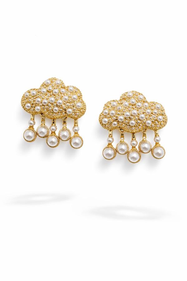 Altın ton bulut form üzerine yerleştirilen inci detayları, tasarıma hem yumuşak hem de sofistike bir hava katıyor. Sallantılı inci uçlar ise hareket ettikçe zarif bir ışıltı oluşturur.