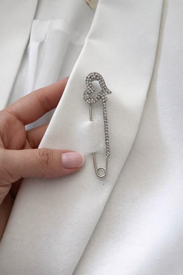 Kalp Işıltı Çengelli Broş, minimal tasarımı ve göz alıcı taş detaylarıyla stilinize sofistike bir dokunuş katar.