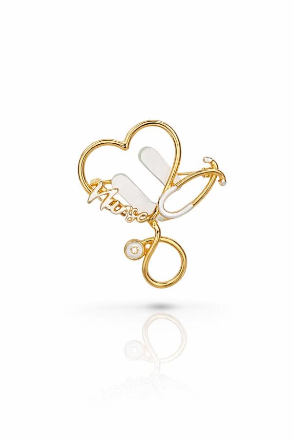 Kalp formu, stetoskop detayı ve “Nurse” yazısıyla tasarlanan bu zarif broş; mesleğine gönül vermiş hemşirelerin şefkatini ve gücünü simgeler.