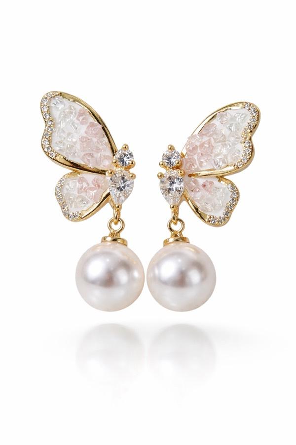 Kelebek Detaylı İnci Sallantılı Küpe – TwoH by Hülya