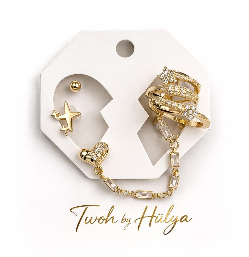 Modern ve göz alıcı tasarımıyla kıkırdak küpe seti, tek parçada bütün bir stil yaratır.
