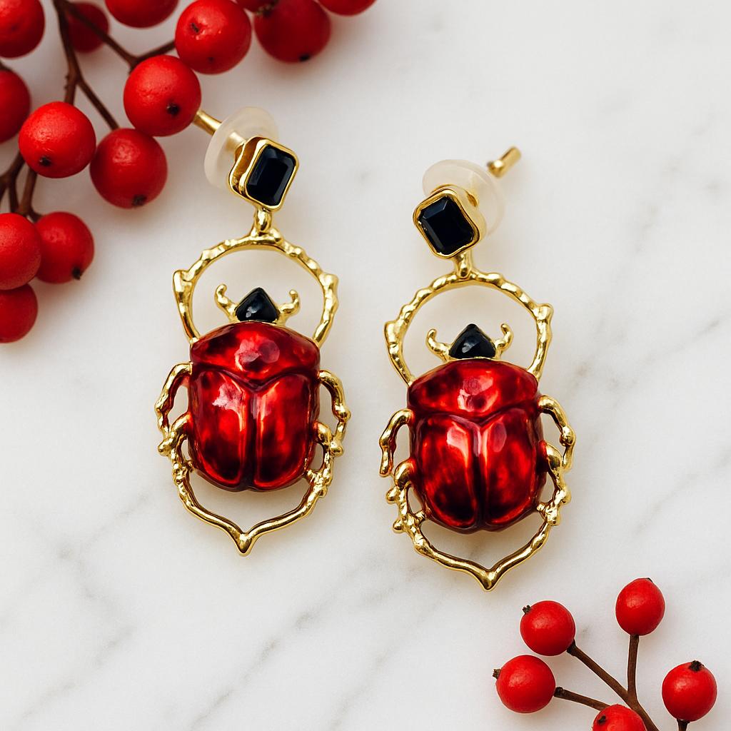 Bu çarpıcı küpeler, yüksek kaliteli metal ve dayanıklı kaplama malzemeleri kullanılarak üretilmiştir. Kırmızı renk, enerji ve tutku simgesi olarak bilinir; bu nedenle bu küpe, her ortamda dikkatleri üzerinize çekmeyi garantiler. Büyük böcek motifleriyle tasarlanan bu ürün, hem modern hem de bohem stiline uyum sağlar.