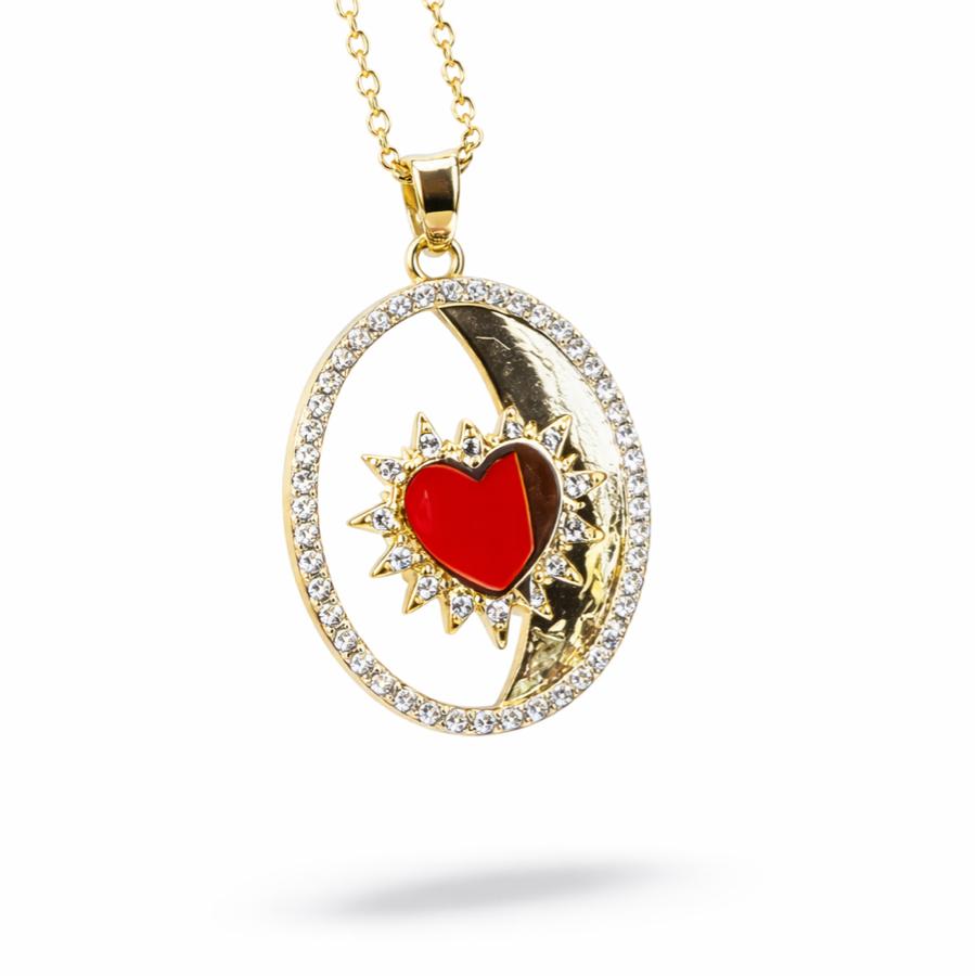 Kırmızı Kalpli Zirkon Taşlı Gold Çelik Kolye