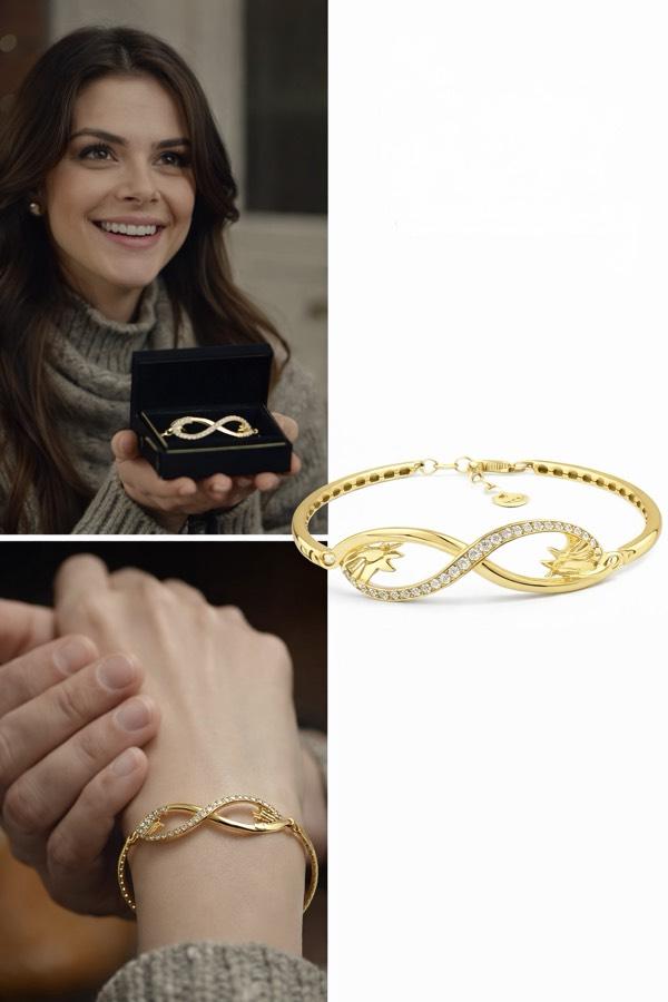 Mardin Güneşi Sonsuzluk Bileklik.Alya Model Mardin’in büyüleyici güneşinden ilham alan bu özel tasarım bileklik, sonsuzluk sembolü ile anlam kazanıyor. Zarif zirkon taş detaylarıyla ışıltıyı, gold dokusuyla sıcaklığı bir araya getirir.