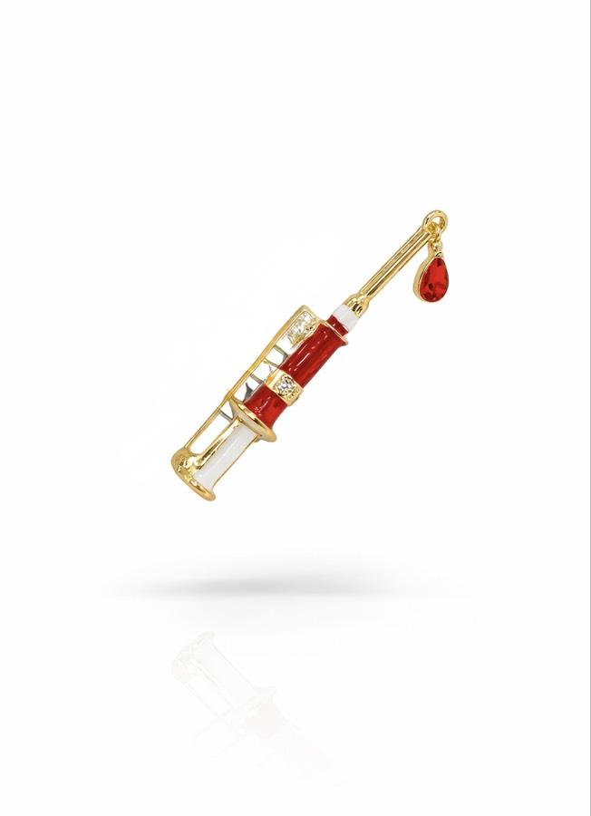 Enjeksiyon figürlü bu özel tasarım broş, sağlık çalışanları için anlamlı ve şık bir aksesuardır.