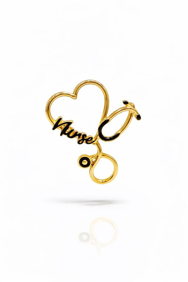 Kalp formu, ince stetoskop detayı ve “Nurse” yazısıyla tasarlanan bu minimal broş; hem şık hem anlamlı bir aksesuar arayanlar için ideal.