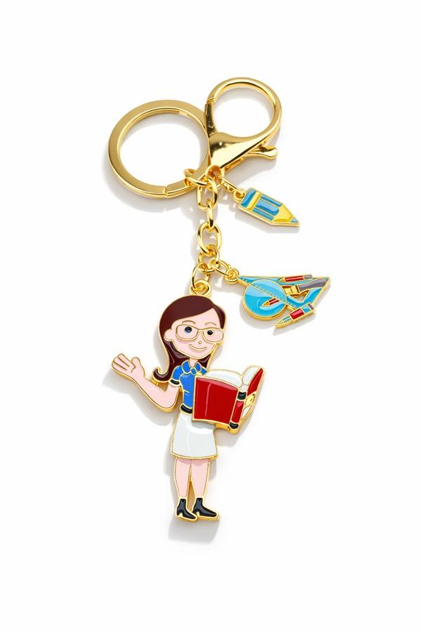 Kitap tutan öğretmen figürü, uçak ve kalem detaylarıyla tasarlanan bu özel anahtarlık; öğrenmeyi ve keşfetmeyi sevenler için anlamlı bir aksesuar sunar.