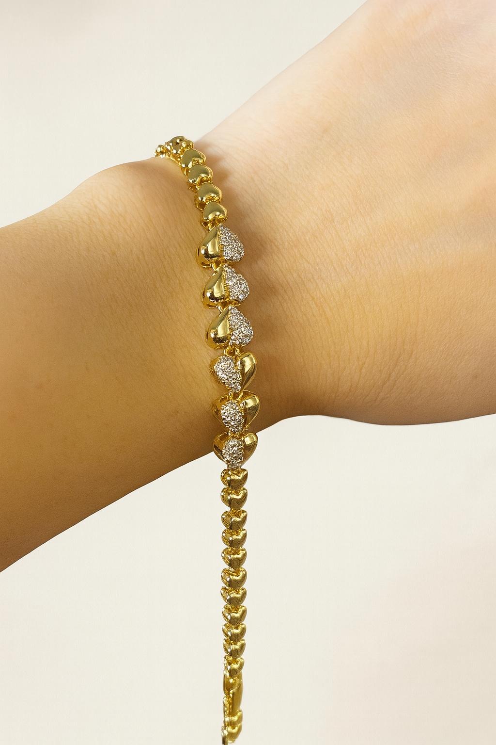 Xuping Özel Seri 14K Gold Taşlı Kaplı ve Plaka Kalpli Kuyumcu Model Bileklik – Aşk ve Şıklığın Buluşması