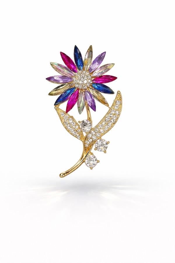 Canlı renkleri ve ışıltılı taş detaylarıyla tasarlanan bu çiçek broş, stiline enerjik ve zarif bir dokunuş katıyor. Göz alıcı formu sayesinde tek parça ile güçlü bir şıklık yaratır.