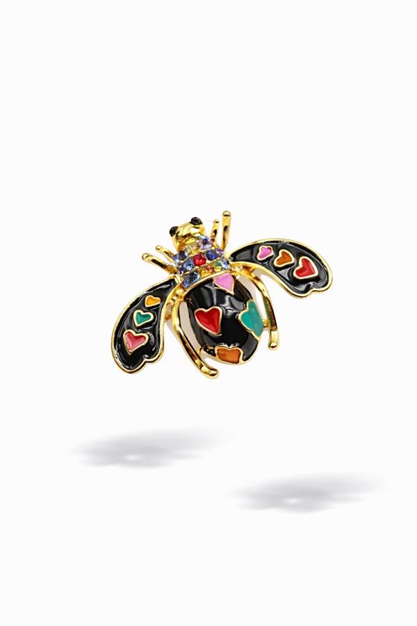 Renkli kalp detaylarıyla süslenmiş bu özel arı broş, stiline neşe ve ışıltı katmak için tasarlandı.