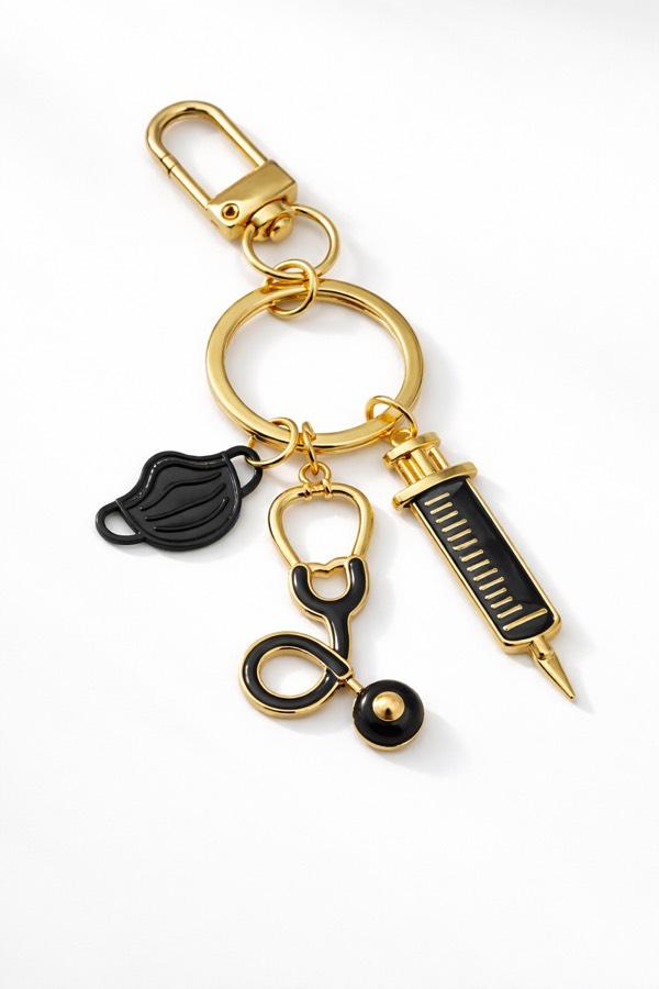 Maske, stetoskop ve enjektör detaylarıyla tasarlanan bu özel anahtarlık; sağlık çalışanlarının emeğini güçlü ve şık bir şekilde yansıtır.