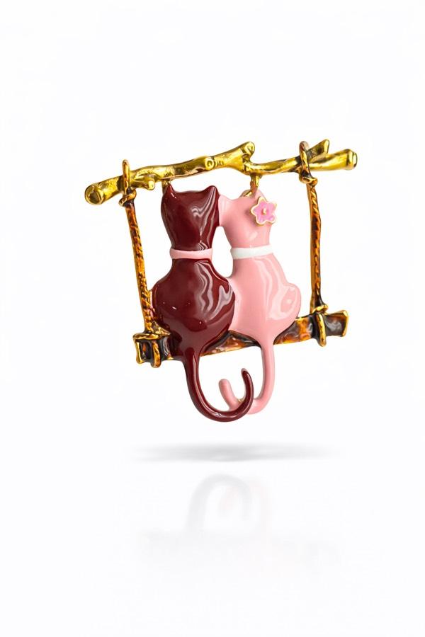 Yan yana oturan iki sevimli kedi figürüyle tasarlanan bu özel broş, dostluğu ve sıcaklığı stiline taşıyor.