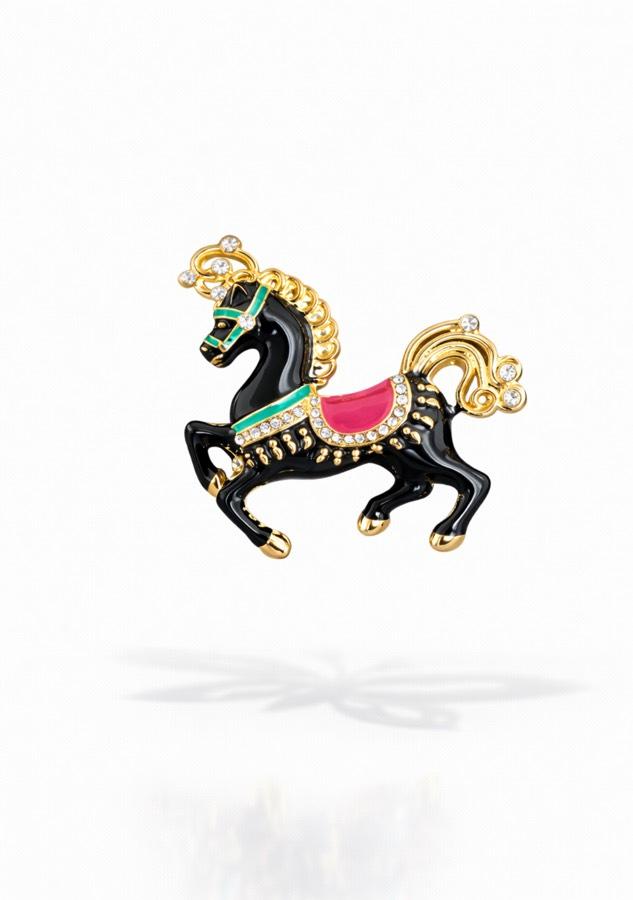Siyah At Broş, zarafeti ve özgünlüğü bir araya getiren eşsiz bir aksesuar olarak tasarlanmıştır. Bu broş, her tarza ve her duruma uyum sağlayabilen asil bir parça arayanlar için mükemmel bir seçimdir.
