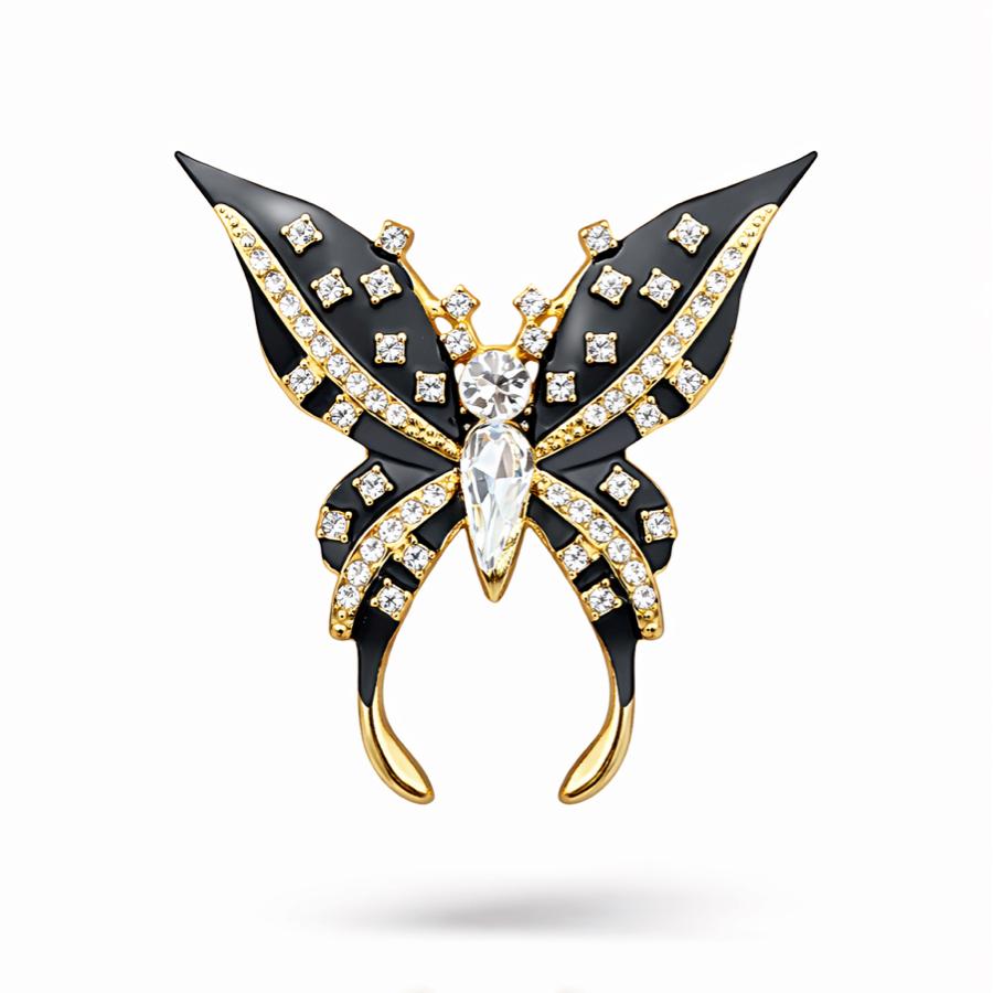 Siyah Taşlı Kelebek Broş