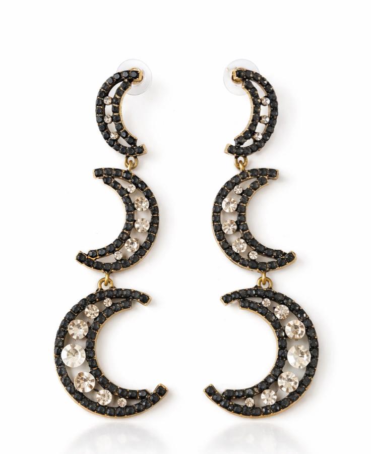 Taşlı Sallantılı Tasarım Çoklu Ay Küpe