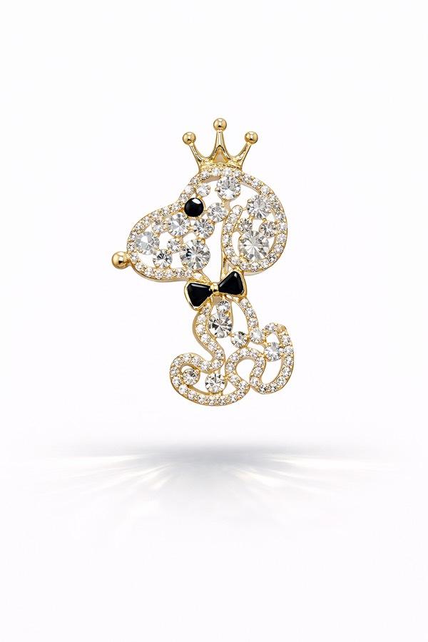 Taşlı Taçlı Köpek Broş ✨