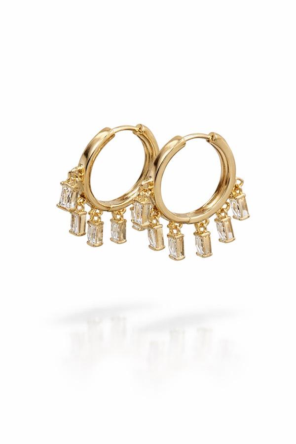 Işıltısı ve hareketli taş detaylarıyla dikkat çeken Shakira küpe, stiline güçlü ve zarif bir dokunuş katmak için tasarlandı. Altın tonlu halka formunun altındaki sallantılı taşlar her hareketinde ışıldar ve kulağında göz alıcı bir görünüm oluşturur. Günlük kullanımda da özel davetlerde de şıklığını tamamlayan modern bir tasarım.