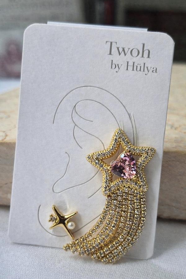 Altın tonlu yıldız detayı ve pembe taşın romantik dokunuşu, her kombine sofistike bir hava katıyor.