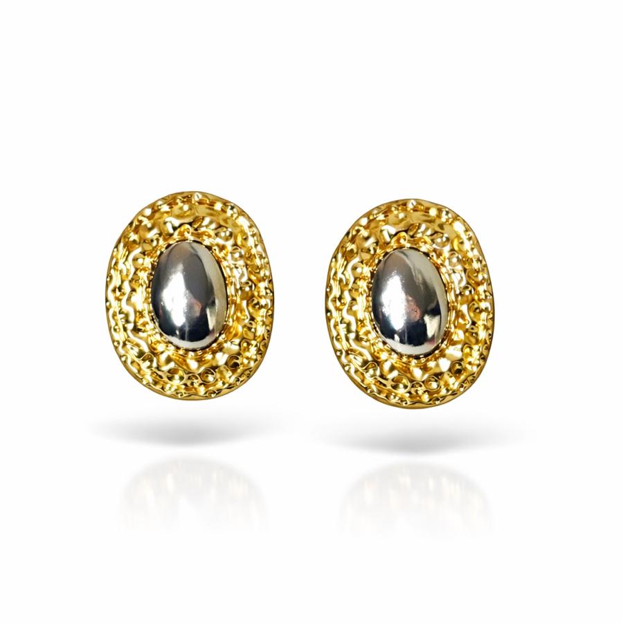 Aşil İki Tonlu Yuvarlak Küpe Altın Renk