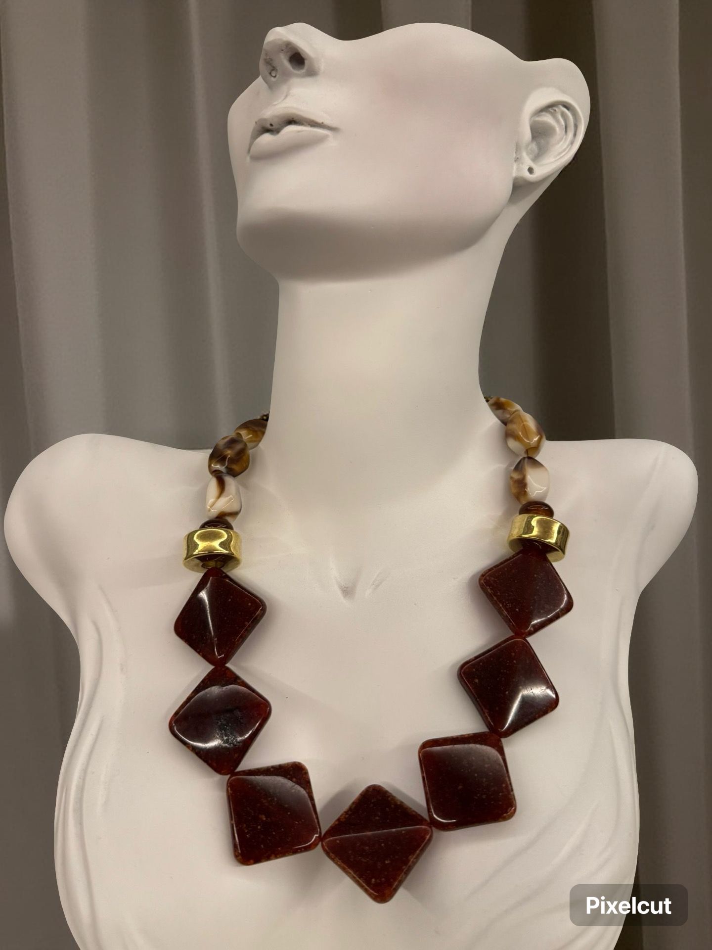 Bu boncuk kolye, farklı boyutlardaki kahverengi boncukların ustaca bir araya getirilmesiyle tasarlanmıştır. Her bir boncuk, el işçiliği ile özenle seçilmiş ve mükemmel bir uyum içinde dizilmiştir. Kolye, doğal taşlardan yapılmış olup, bu da ona benzersiz ve otantik bir görünüm kazandırmaktadır. Doğal taşların enerjisi sayesinde, kolyenin kullanımı kişinin ruh halini de olumlu etkileyebilir.