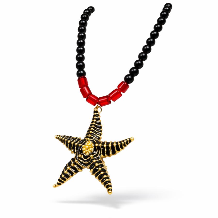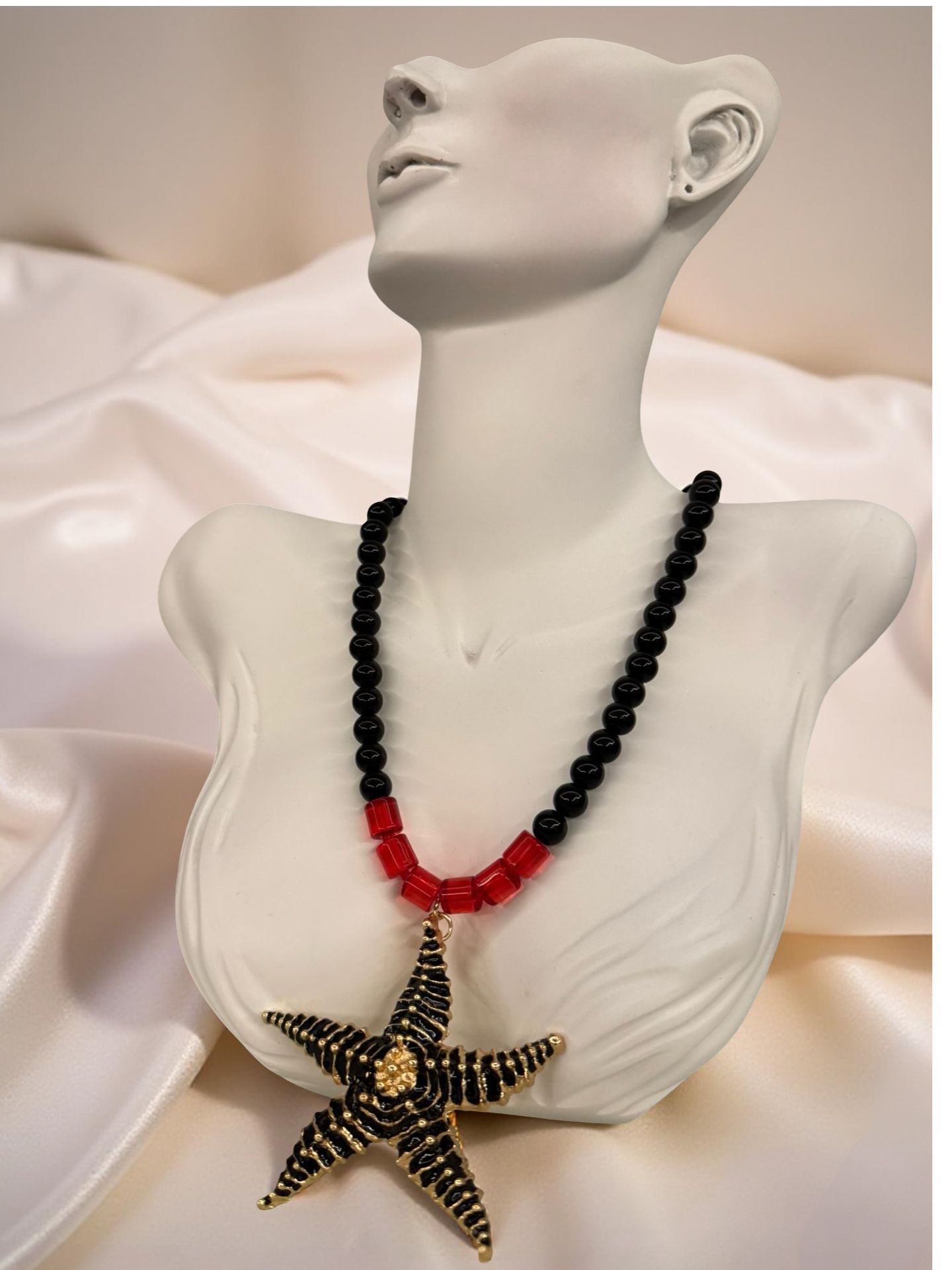 Zara Model Siyah ve Kırmızı Boncuk Büyük Deniz Yıldızlı Kolye