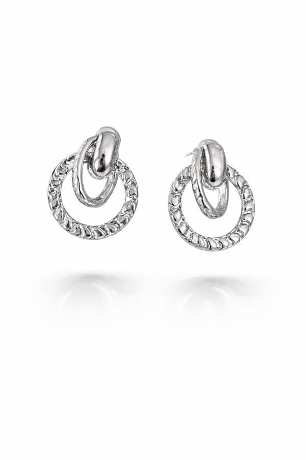 Zincir Detaylı Gümüş Ton Halka Küpe
